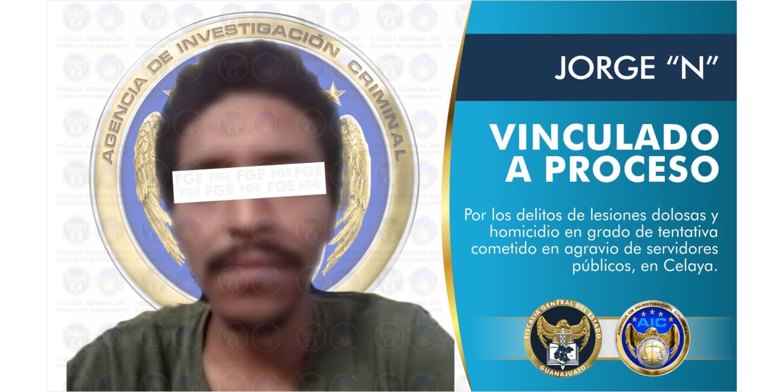Celaya, Gto: A 27 de julio del 2021; Por los delitos de lesiones dolosas y homicidio en grado de tentativa cometido en agravio de servidores públicos, un sujeto fue vinculado a proceso penal al acreditar la Fiscalía General del Estado su probable responsabilidad.