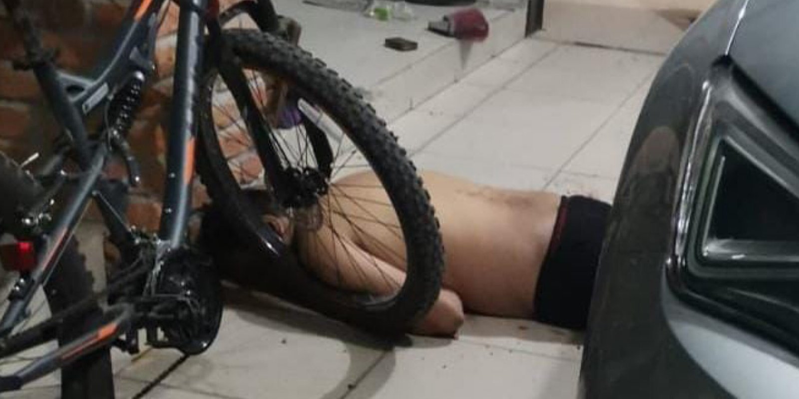 En la entrada estaba la víctima de edad aproximada a los 30 años, quien estaba tirado en el suelo, boca abajo y sobre un charco de sangre.