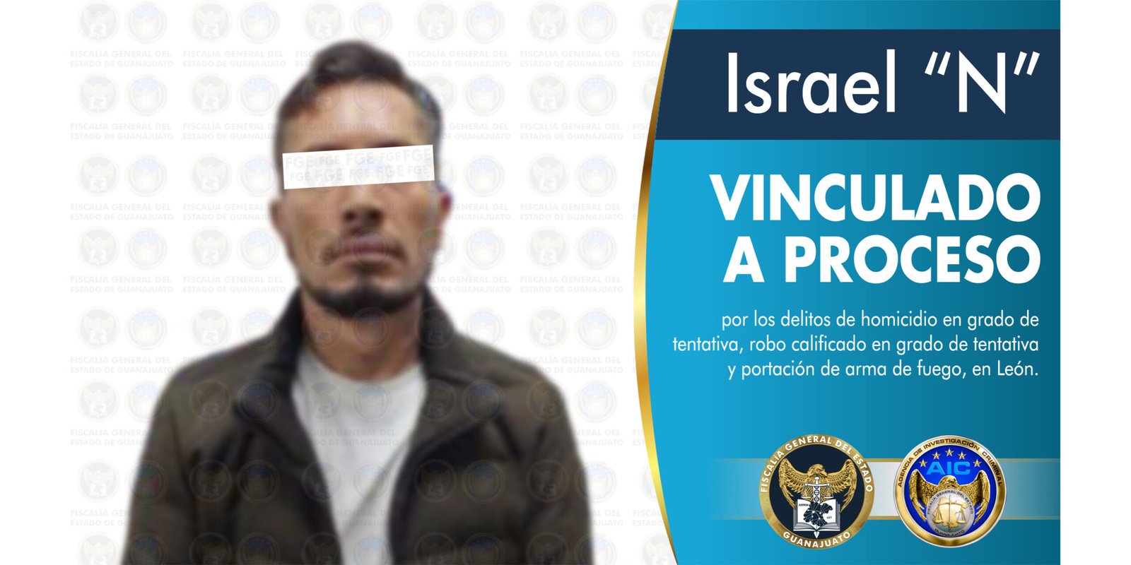 Celaya, Gto: a 8 de julio del 2021; En audiencia judicial, un agente del Ministerio Público formuló imputación y obtuvo que Israel “N” quede en prisión vinculado a proceso penal, por su probable responsabilidad en los delitos de robo calificado en grado de tentativa, homicidio en grado de tentativa y portación de arma de fuego.